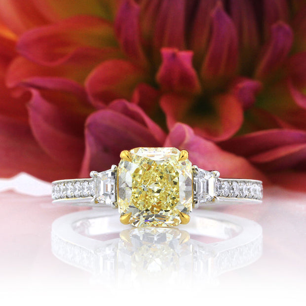 5.63ct Fancy Light Yellow Cushion Cut Diamond Engagement Ring