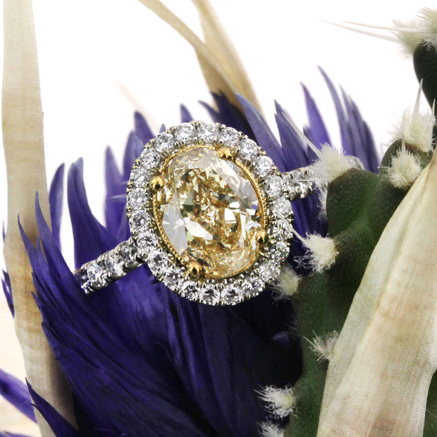 3.74ct Fancy Yellow Oval Cut Diamond Engagement Ring