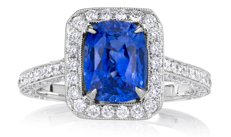 3.65ct Cushion Cut Blue Sapphire Engagement Ring