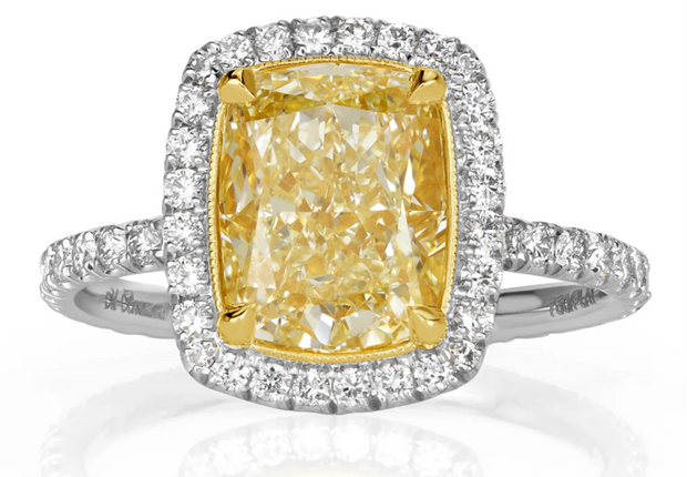 Love the look of the cushion cut, but want a little color? Then look into the rich and vibrant Fancy Yellow Cushion Cut Engagement Rings available from Mark Broumand.