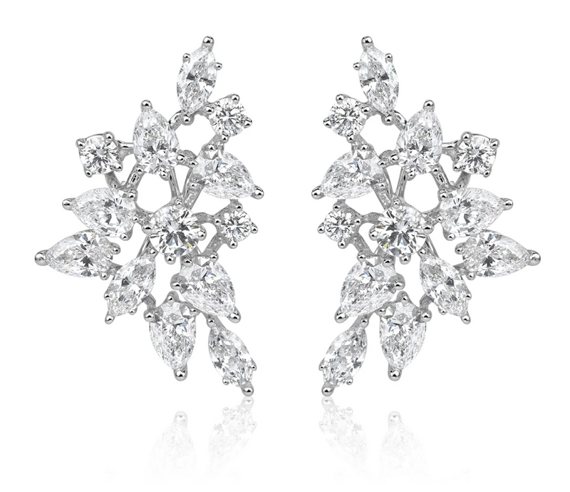 2.84ct Floral Cluster Diamond Stud Earrings in 18k White Gold