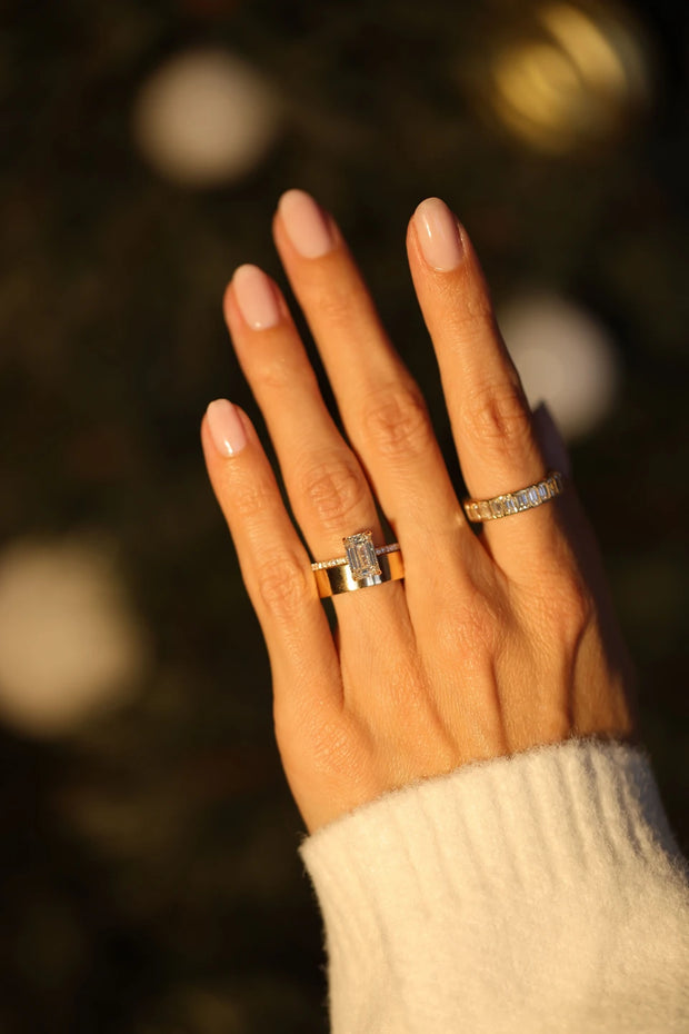 Yellow gold eternity rings often exude a classic charm, making them a popular choice for those who appreciate a more traditional aesthetic. The warm glow of yellow gold beautifully complements diamonds and gemstones, enhancing their brilliance and creating a striking contrast.