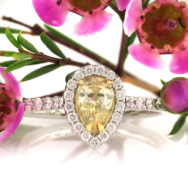1.99ct Pear Shaped Green Emerald and Diamond Engagement Ring