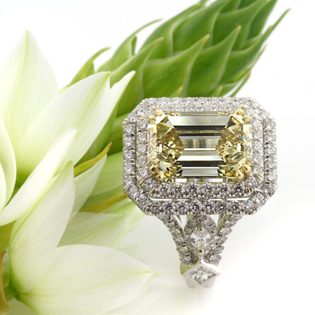 Mark Broumand hosts his own version of precious jewelry sets worthy of the Royal Family. One in particular is the above set hosting fancy yellow diamonds. It includes an elegantly designed necklace and earrings. The extremely rare collection of fancy yellow pear shaped and radiant cut diamonds in this one of a kind set that took forever of searching to find the perfect diamonds to match one another.