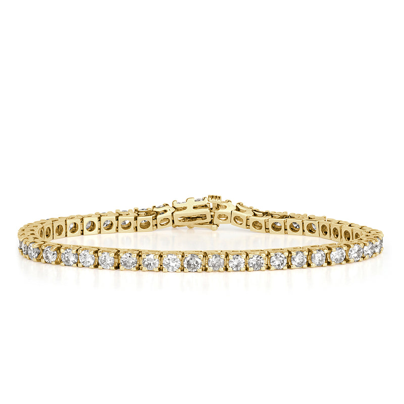 This 14k yellow gold diamond tennis bracelet is a timeless classic. Featuring 5.75ct of sparkling round brilliant cut diamonds set in a four-prong setting. This beauty showcases stunning wrist coverage and looks very impressive on.