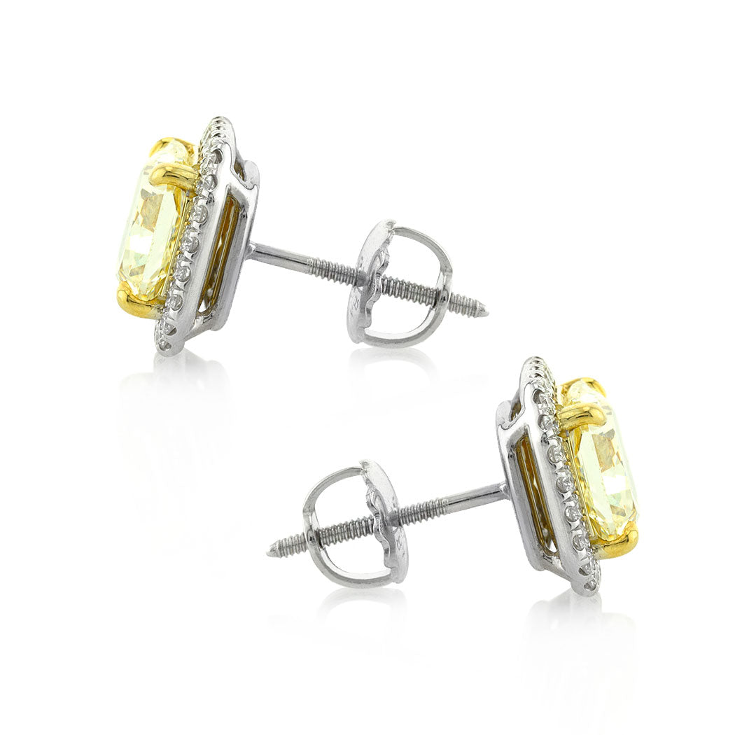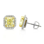 3.86ct Fancy Yellow Radiant Cut Diamond Halo Earrings
