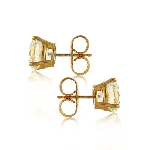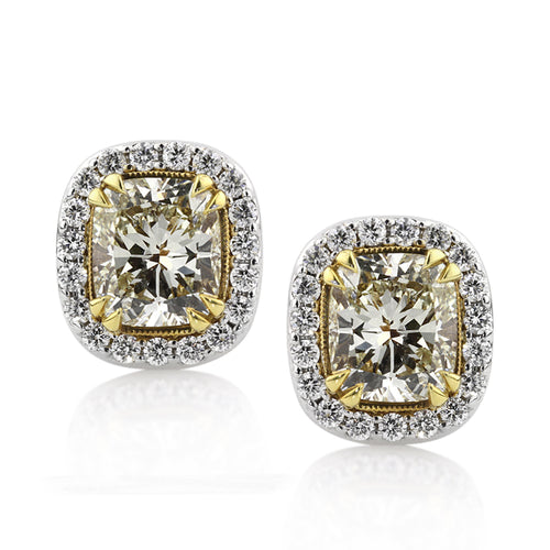 4.22ct Fancy Light Yellow Cushion Cut Diamond Stud Earrings