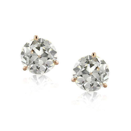 4.02ct Old Mine Cut Diamond Stud Earrings