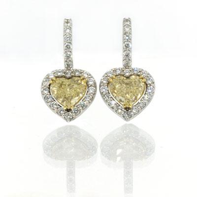 2.68ct Fancy Yellow Oval Cut and Pear Shaped Diamond Earrings