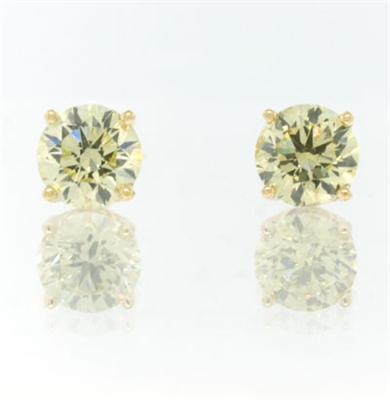 2.52ct Fancy Yellow Cushion Cut Diamond Stud Earrings
