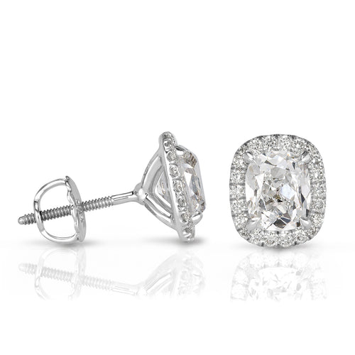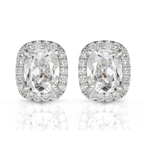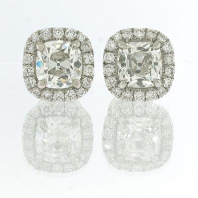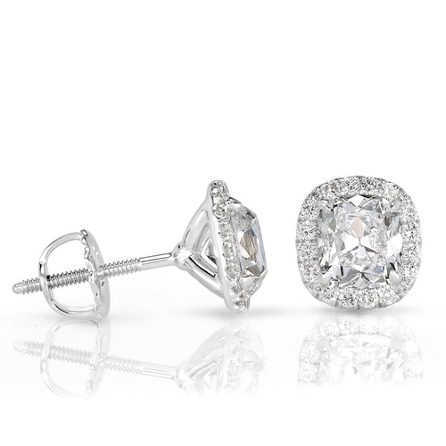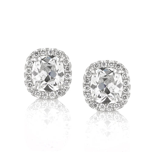 2.35ct Antique Cushion Brilliant Halo Diamond Stud Earrings