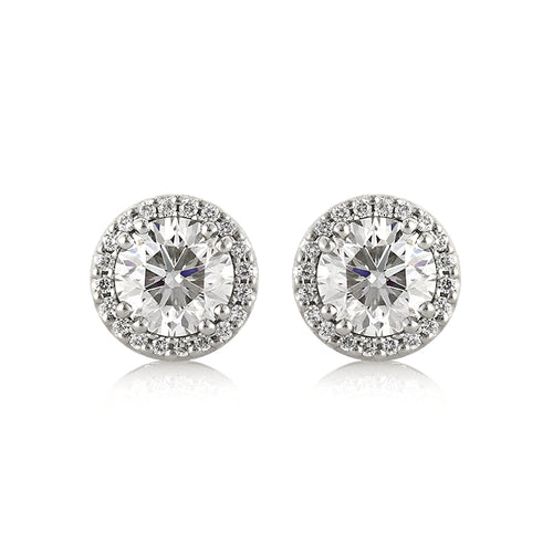 2.25ct Round Brilliant Cut Diamond Halo Stud Earrings