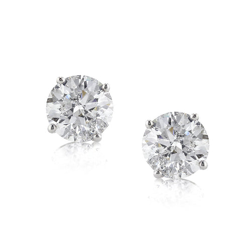 3.04ct Round Brilliant Cut Diamond Stud Earrings