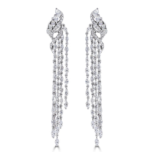 3.25ct Oval Cut Diamond Dangle Earrings in 18k White Gold