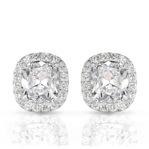 2.06ct Cushion Cut Diamond Halo Stud Earrings