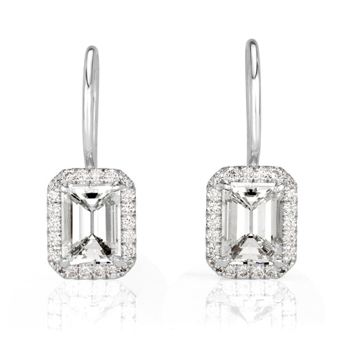 2.27ct Emerald Cut Diamond Dangle Earrings in 18k White Gold