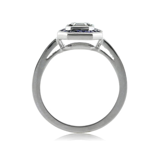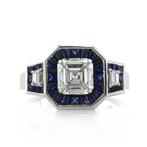1.62ct Asscher Cut Diamond and Sapphire Engagement Ring