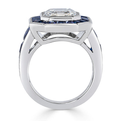 7.40ct Asscher Cut Diamond and Sapphire Engagement Ring