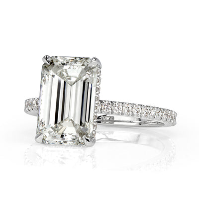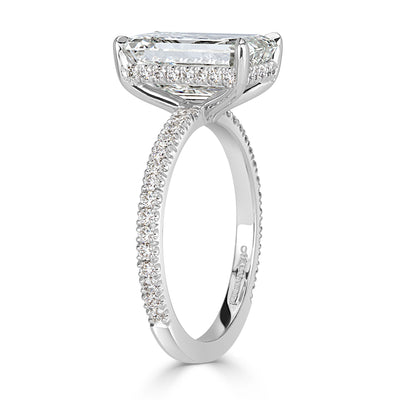 Discover the epitome of elegance with our 4.50ct Emerald Cut Diamond Engagement Ring. A magnificent emerald cut center diamond, weighing 4.01ct and GIA certified at G-VVS1, takes center stage in this exquisite piece. The center diamond is extremely clear even under magnification and has huge proportions measuring at 11.45 x 6.87mm. Set in a timeless design with meticulous craftsmanship, this ring radiates sophistication and grace. Make a statement with this extraordinary symbol of everlasting love.