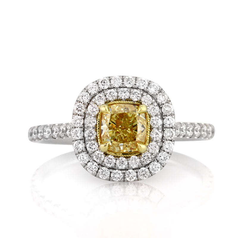 1.54ct Fancy Intense Yellow Cushion Cut Diamond Engagement Ring