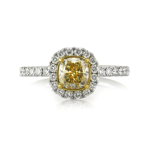 1.73ct Fancy Yellow Cushion Cut Diamond Engagement Ring