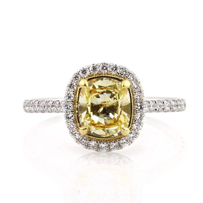 1.82ct Fancy Light Yellow Cushion Cut Diamond Engagement Ring