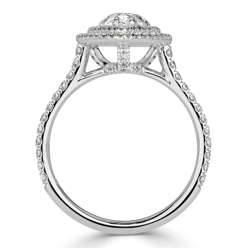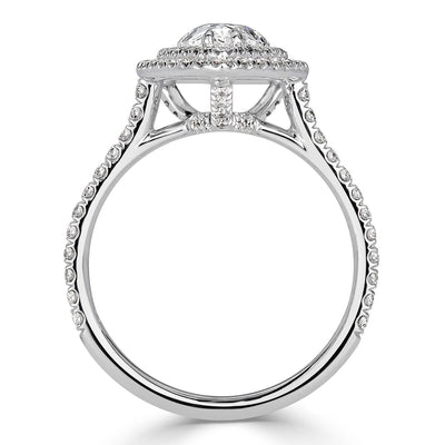 The more finger coverage, the merrier with this beautiful double halo pear shaped ring. At the center of this ring sits a 1.11ct pear shaped diamond that is GIA certified at F-VS1. It faces up colorless and is an extremely clean stone! This diamond looks like a 1.50ct + with it’s remarkable measurements of 10.41 x 6.24 mm. In addition to the double halo, round brilliant cut diamonds are added to the shank of the ring as well as the basket connectors.  This piece is set in platinum, which only adds to its sparkle! Get ready for lots of compliments with this stunner!