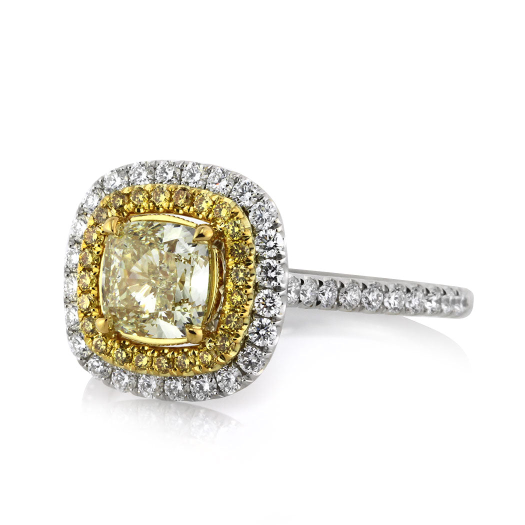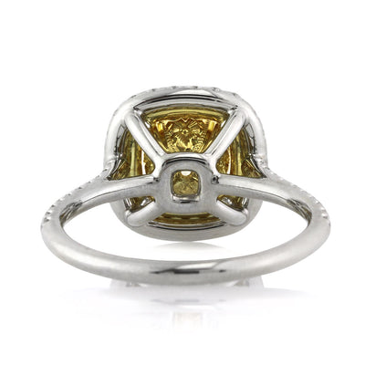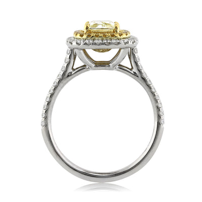 1.96ct Fancy Light Yellow Cushion Cut Diamond Engagement Ring