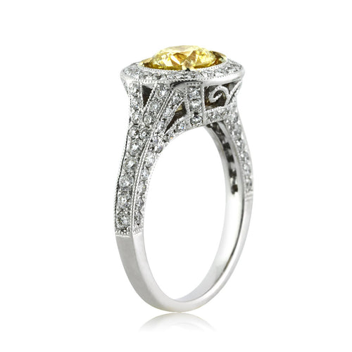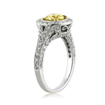 1.97ct Fancy Yellow Round Brilliant Cut Diamond Engagement Ring