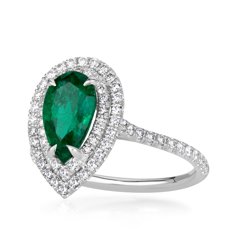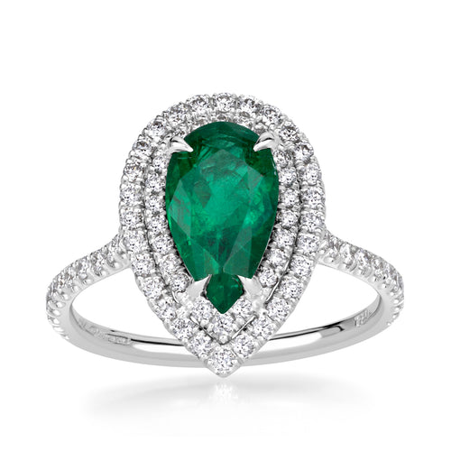 2.26ct Pear Shaped Emerald and Diamond Engagement Ring