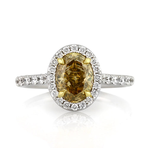This amazing cushion cut diamond engagement ring is such an incredible value! The dazzling cushion cut center diamond is GIA certified at I-SI2. It is exceptionally white and perfectly eyeclean with only white inclusions. The center diamond measures at an amazing proportion of 8.25 x 7.27mm and sparkles brightly with it's incredible cut! It is accented by round brilliant cut diamonds in a pavé setting on the hidden halo design as well as going down the shank of the ring. The diamonds shimmer tremendously. This high polish 18k champagne yellow gold cushion cut diamond engagement ring is mesmerizing from every angle!