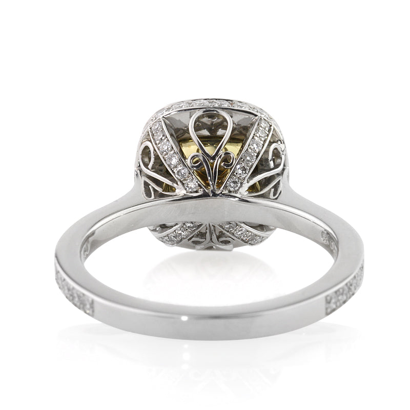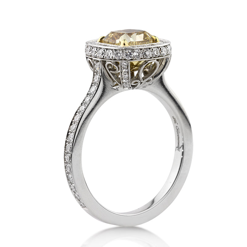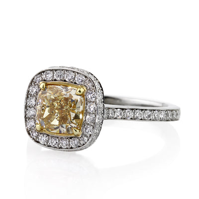 2.61ct Fancy Yellow Cushion Cut Diamond Engagement Ring