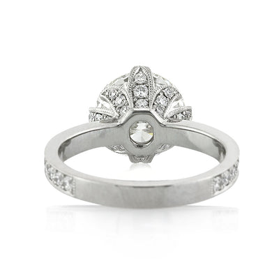 This flawless masterpiece is truly one in a million! The gorgeous 3.34ct round brilliant cut diamond showcased in this graceful platinum engagement ring is GIA certified at J-IF. It is white in color and flawless in clarity. It is graded as triple excellent, meaning the cut, polish and symmetry are all excellent. The custom crafted setting showcases is perfectly with round diamonds pave set on the masterfully crafted center prongs and one row of round diamonds set on the shank, featuring milgrain detail throughout. This piece is truly awe-inspiring. Sure to be cherished for generations to come.