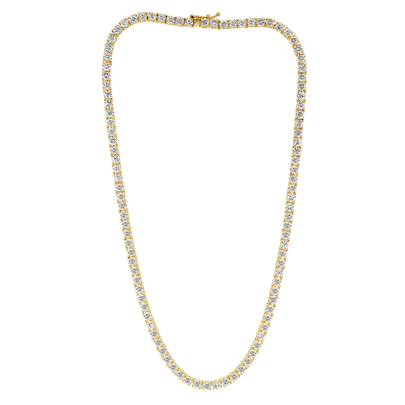 13.20ct Round Brilliant Cut Diamond Tennis Necklace in 14k Yellow Gold