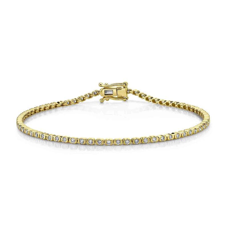 Dainty and delicate, this 0.84ct Round Cut Diamond Bracelet is perfect for layering with other pieces or worn on its own. Each stone is surrounded by elegant 14k yellow gold. This piece lays beautifully on the wrist and will be the perfect addition to your bracelet stack.
