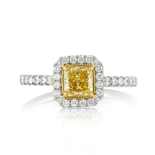 1.30ct Fancy Intense Yellow Radiant Cut Diamond Engagement Ring