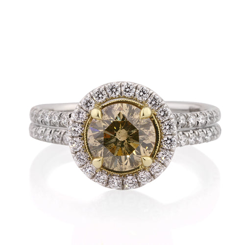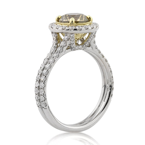 2.49ct Fancy Brown Green Yellow Round Brilliant Cut Diamond Engagement Ring