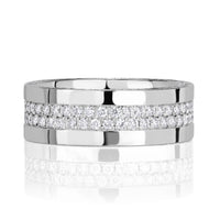 Crafted from your choice of durable 14K or 18k white, yellow, or rose gold, and platinum. The polished finish enhances the men's diamond wedding band’s modern aesthetic, while the precision craftsmanship reflects artisan-level detail and quality. Each ring is fully customizable, with options for engraving and sizing to create a truly personal symbol of commitment. Designed for the discerning groom who values both luxury and durability, this men's diamond wedding band combines traditional design with contemporary flair, making it a lasting heirloom for generations.