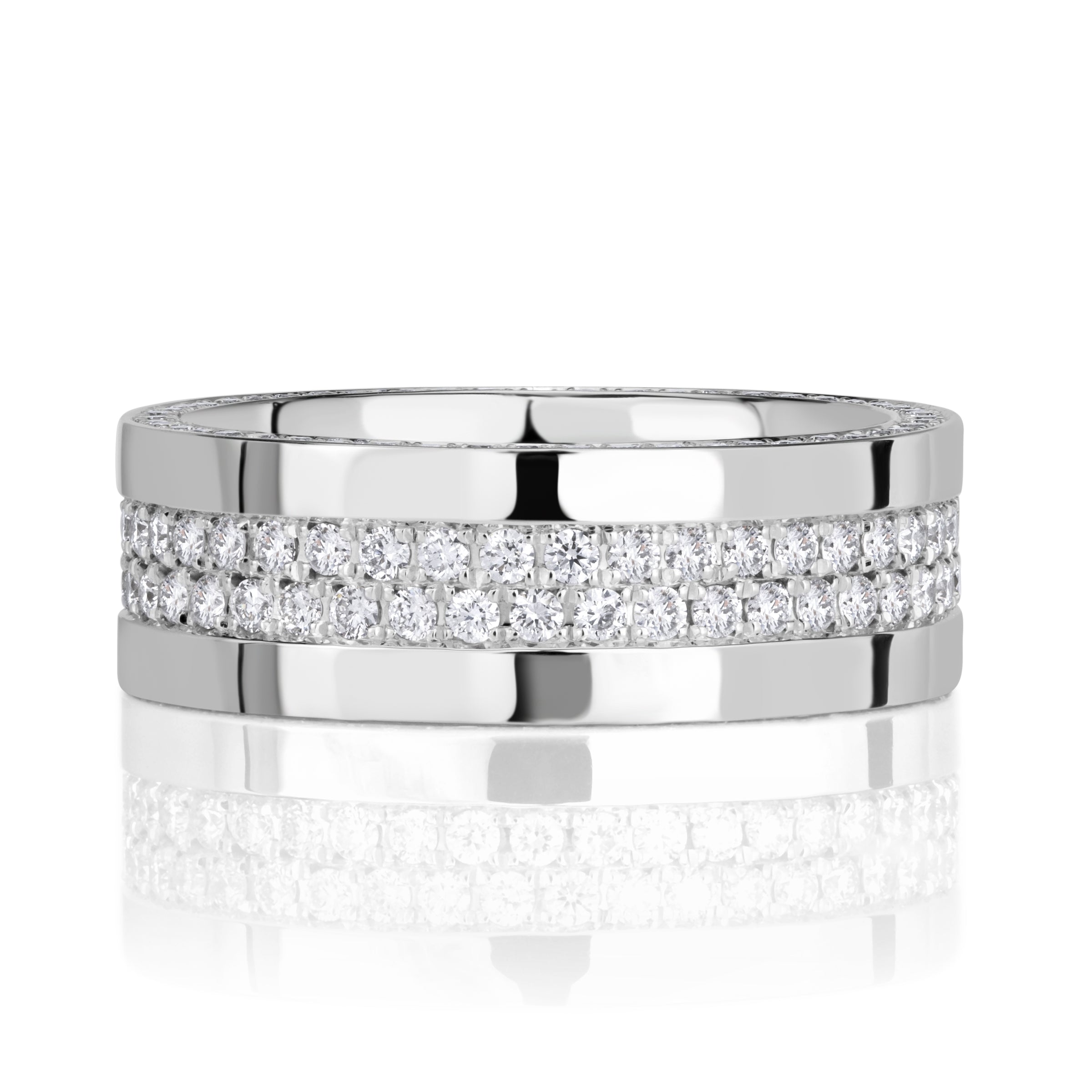 Ethically sourced round brilliant cut diamonds and metals guarantee responsible luxury, ensuring every detail—from stone selection to final polish—is held to the highest standards. This men's diamond wedding band perfectly complements any wedding ceremony or anniversary celebration, elevating men’s diamond jewelry to a new level of excellence.
