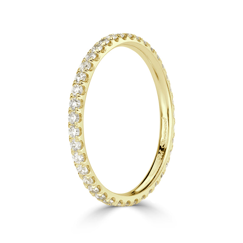 Fun and flirty, this diamond pinky ring is a stunner! Featuring 0.28ct of round brilliant cut diamonds set all the way around. The diamonds are exceptionally white and clear at E-F in color and VS1-VS2 clarity. Available up to ring size 4.5. Contact us for pricing on larger sizes!