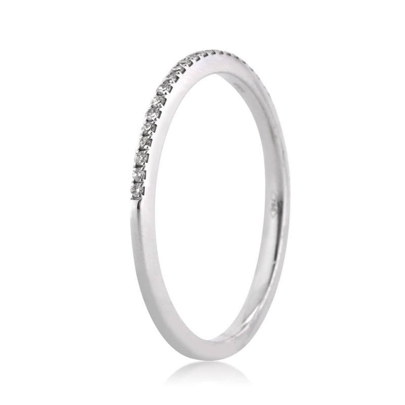 This dainty round brilliant cut micro pavé wedding band is finely crafted and is perfect as a stand alone band or paired with your engagement ring. It is set with 0.30ct of bright, white round diamonds on a beautiful 18k white gold setting.