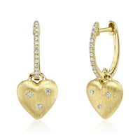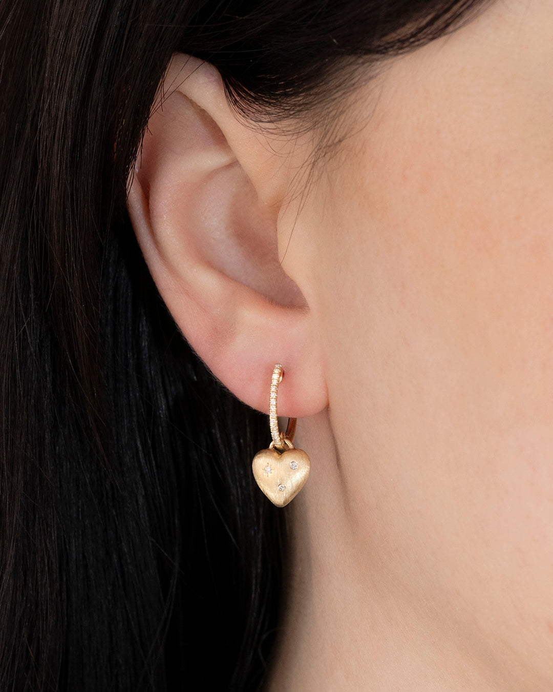 0.10ct Diamond Heart Charm Huggie Hoop Earrings
