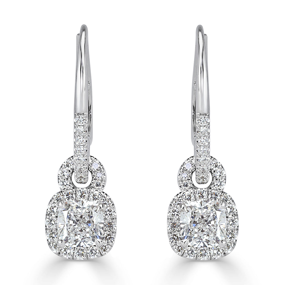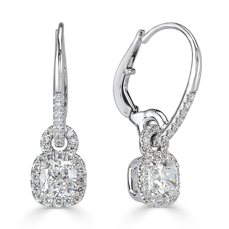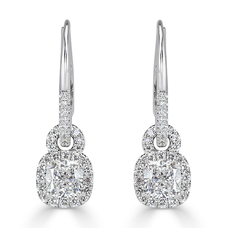 1.66ct Cushion Cut Diamond Dangle Earrings in Platinum