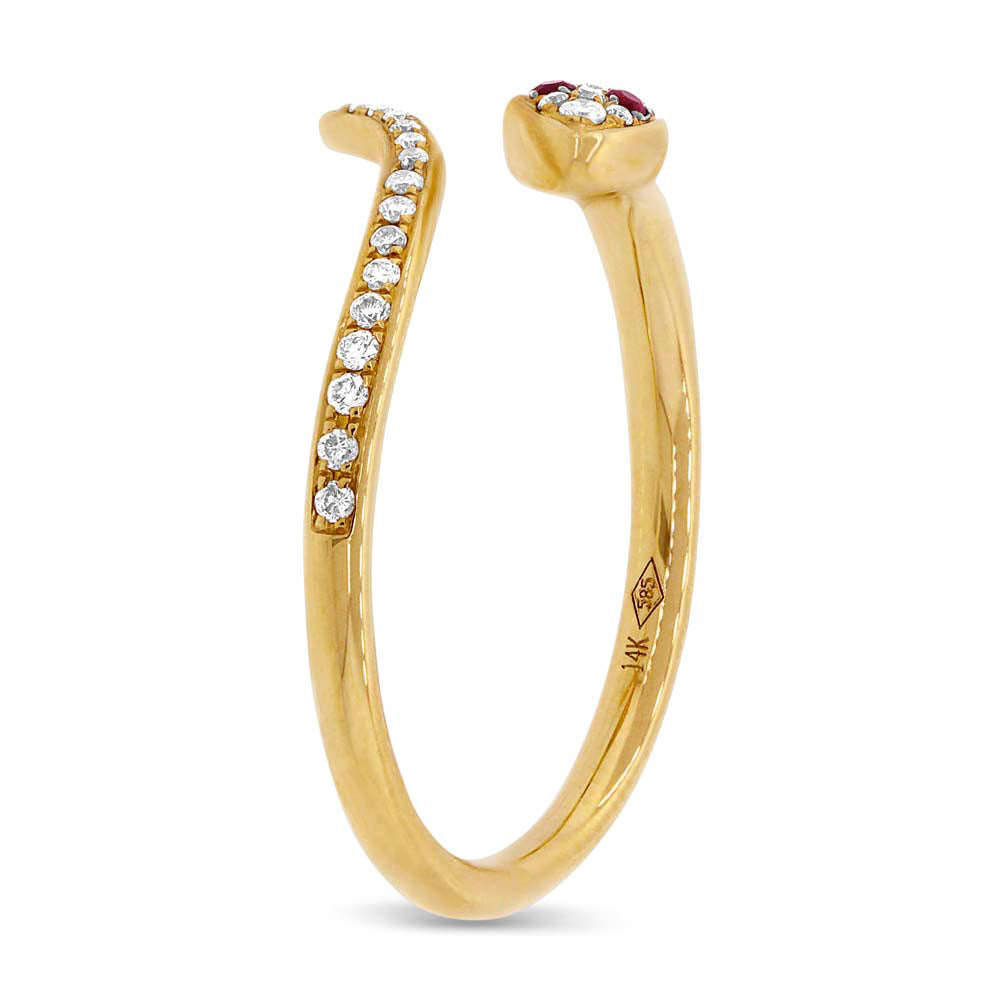 0.22ct Ruby and Diamond Snake Ring in 14k Yellow Gold