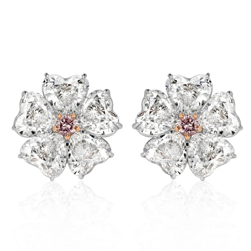 10.64ct Heart Shaped Diamond Floral Stud Earrings with Pink Diamond Centers