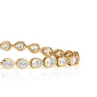 The 3.40-carat Pear Shaped Diamond Tennis Bracelet offers a fresh take on a jewelry classic. Crafted in fine gold, it features pear-shaped diamonds arranged in a continuous line, each one bezel set for a look that feels sleek, contemporary, and incredibly wearable.
