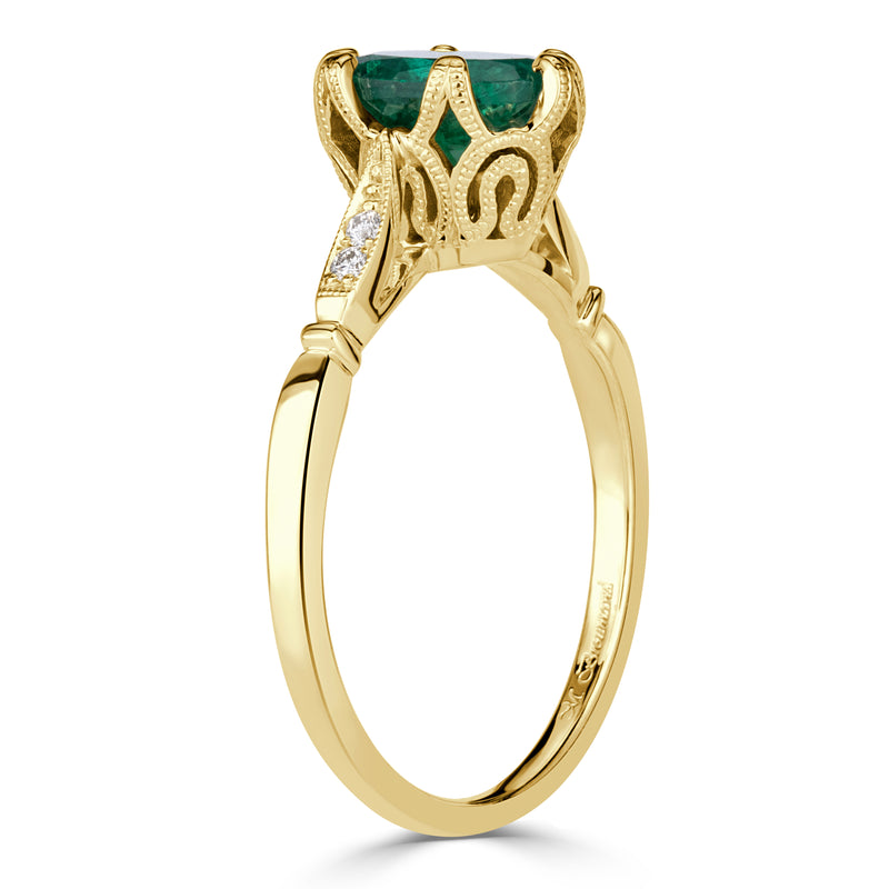 1.28ct Oval Cut Green Emerald Engagement Ring