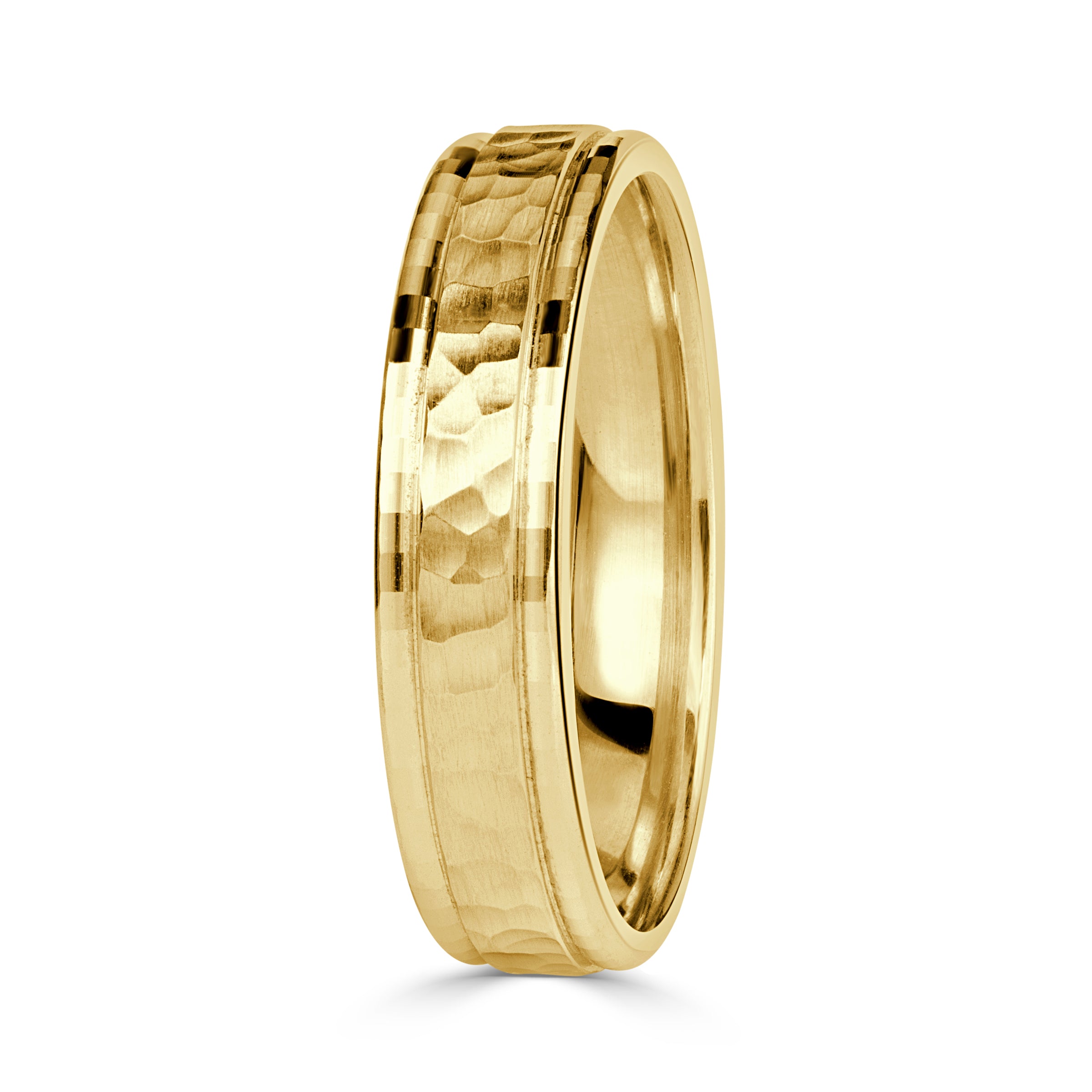 Hammered Center Faceted Edge Men's Wedding Band 5mm
