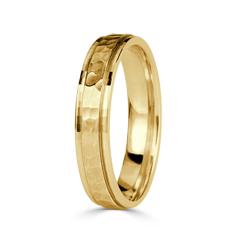 Hammered Center Faceted Edge Men's Wedding Band 4mm