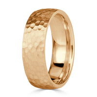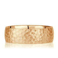 Available in 14K or 18K White, Yellow, or Rose Gold, as well as Platinum, this hammered men's wedding band is crafted in solid precious metal to ensure durability and lasting beauty. The matte finish naturally resists the appearance of wear, allowing the ring to age gracefully while preserving its distinctive surface.